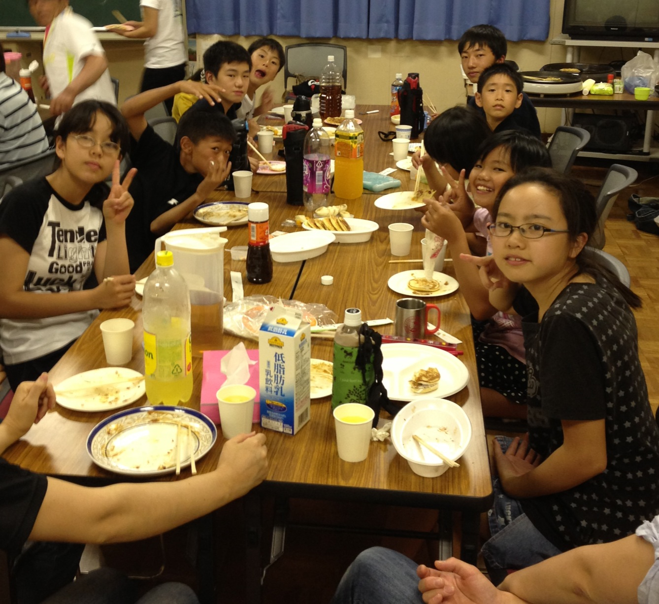 さて、お楽しみの会です。一時間前からお母様方が、準備してくれた「お好み焼」「パンケーキ」